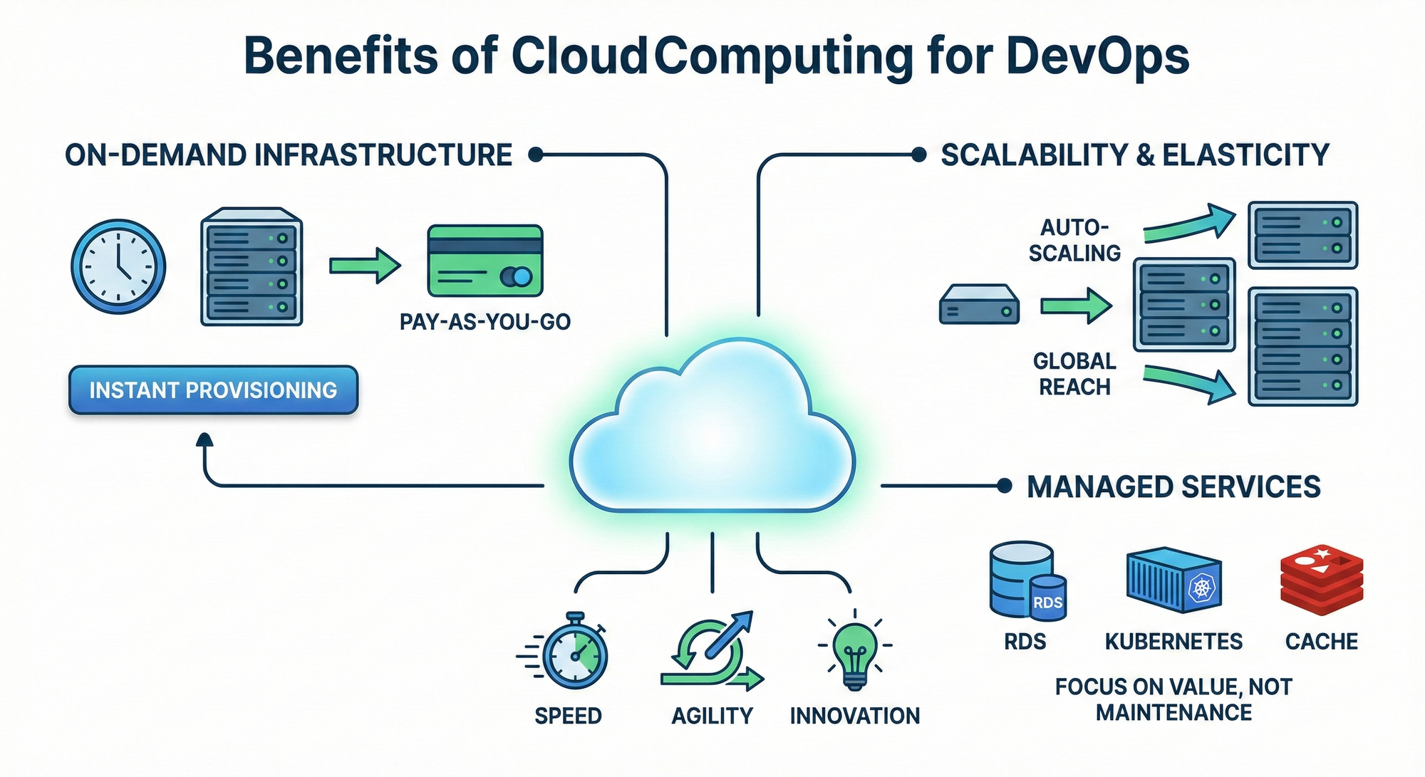 클라우드 컴퓨팅은 DevOps 문화를 실현하는 데 있어 가장 강력한 무기입니다. AWS, Azure, GCP와 같은 퍼블릭 클라우드는 유연하고 확장 가능한 인프라를 제공하여 DevOps의 핵심 가치인 '빠른 시도와 피드백'을 가능하게 합니다.