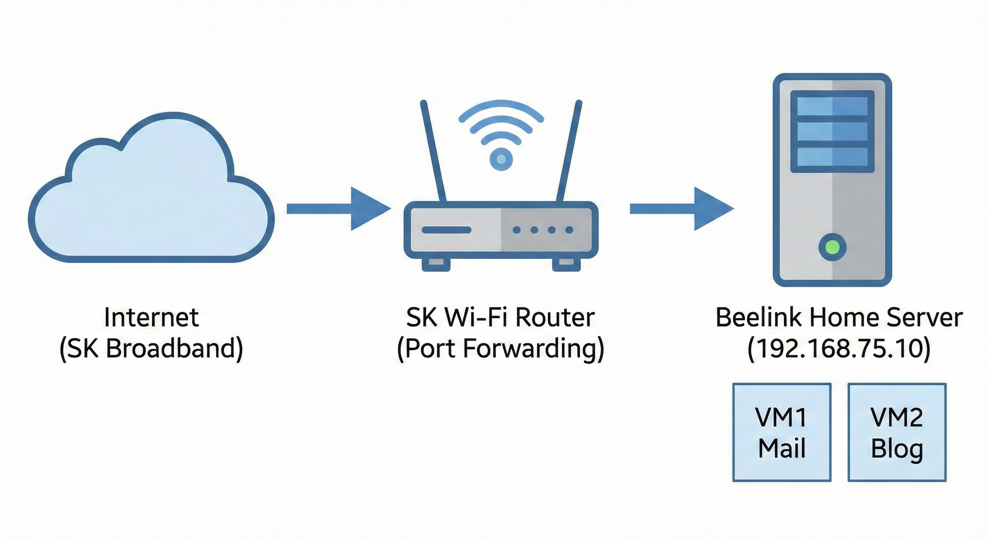 ISP(SK Broadband) ➔ SK GiGA WiFi 공유기 ➔ Beelink Home Server