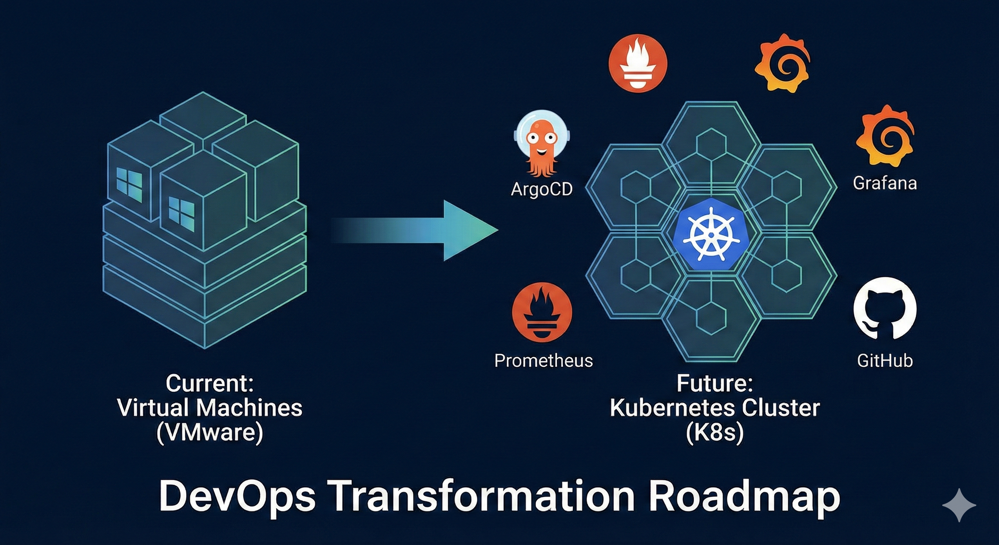 현재의 VM(Virtual Machine) 기반 아키텍처는 안정적이지만, 리소스 오버헤드가 크고 현대적인 애플리케이션 배포 방식과는 거리가 있습니다. 따라서 향후 컨테이너 기반의 Kubernetes 클러스터로 마이그레이션을 계획 중입니다.